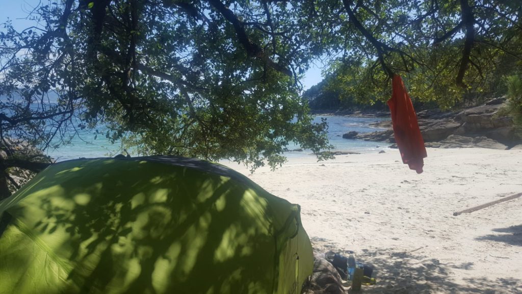 Der vorletzte Nachtplatz. Man ahnt das Gepäck und das uns Essen wichtig ist.