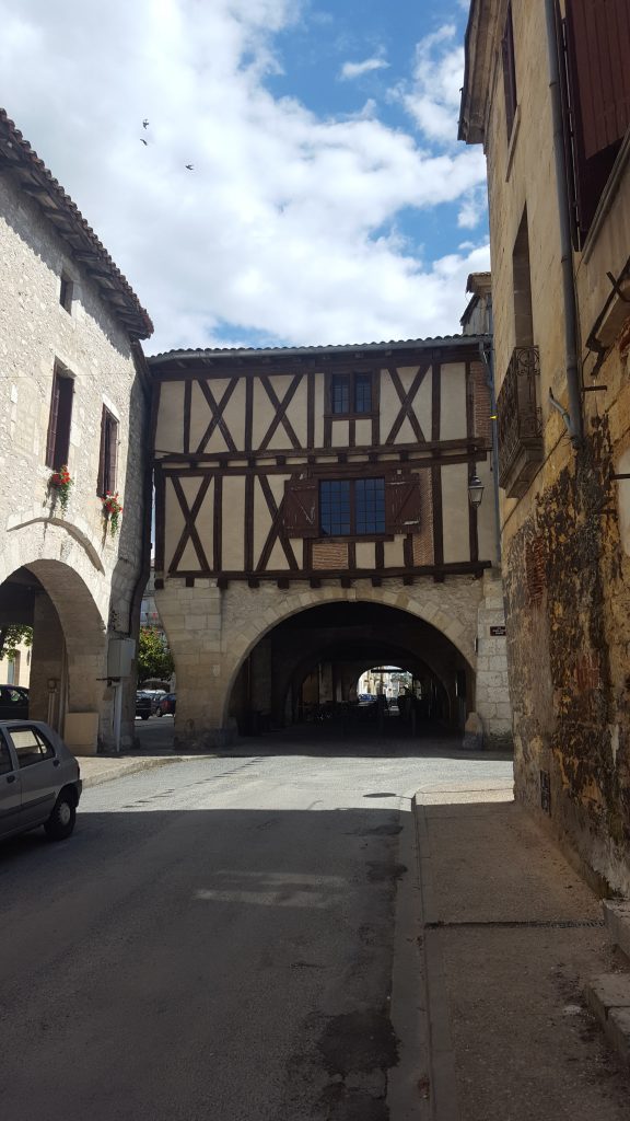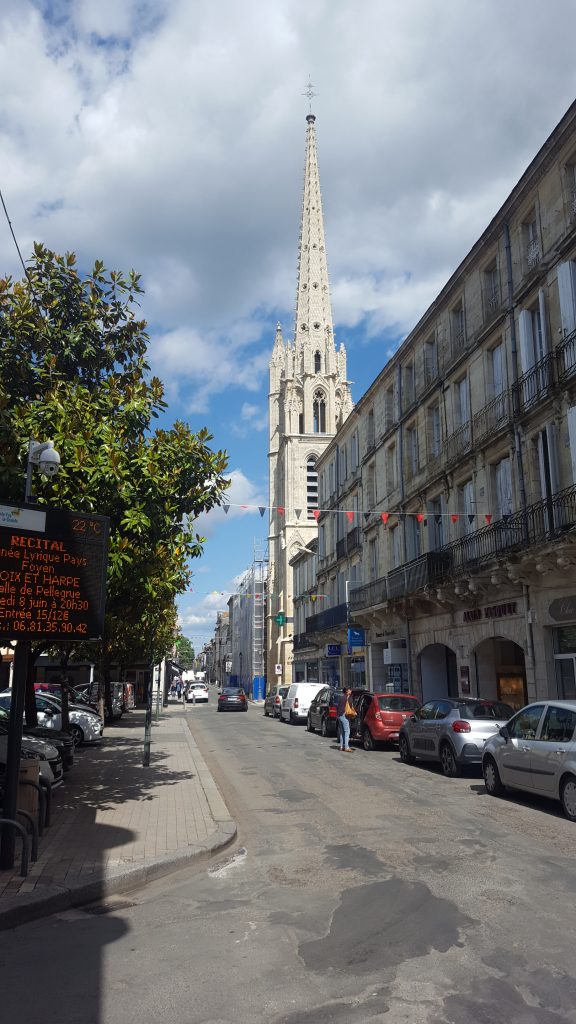 Bis Bazas war’s wie bisher üblich hoch und runter. 5km nach dem Start verließen wir keuchend das Girondetal um nach etlichen Steigungen in dem wunderschönen Ort Bazas anzukommen. Wie so oft eine wunderschöne Altstadt mit der Kathedrale im Zentrum. Wie immer keine Zeit. Diesmal ist der Weg das Ziel! Manchmal schade.