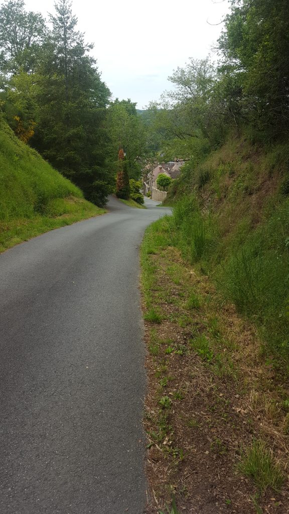 Es wird immer steiler. Wir befinden uns im Haute Limousin und ich würde es mit dem Hochschwarzwald vergleichen. Egal wohin entweder steil hoch oder runter. Ein Ort wird uns ihn Erinnerung bleiben. FROMENTIN. Erst ging’s wiedermal flott hinab um dann auf 600m geschätzt 100 zu steigen. Ich bin am Schluss schlangenlinien gefahren.