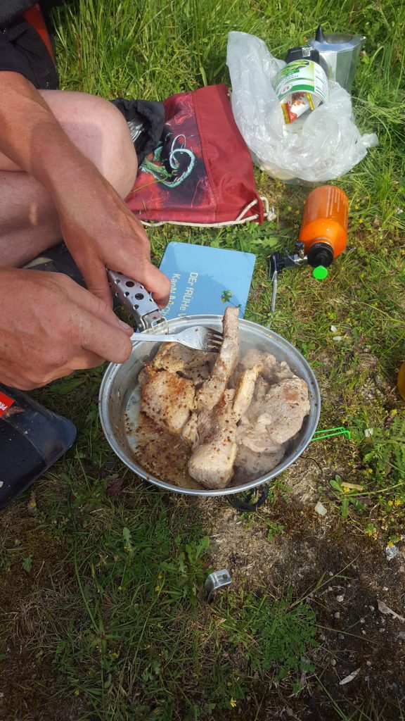 Da wir gestern wegen dem Regen nicht gekocht hatten aber viel eingekauft gab’s dann Völlerei. Mjammm!