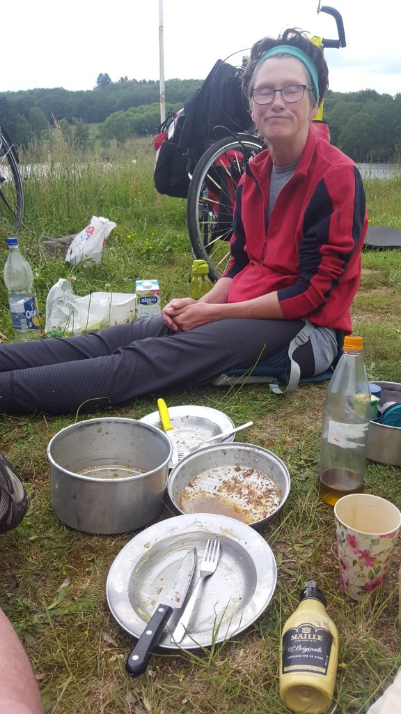 Leider gings dadurch ins Flusstal. Der Ort lag dann wieder oben und der Zeltplatz nochmal obener und…..war zu. Sooo ein Schieß!!! Hatten uns nach 46km so auf einen gemütlichen frühen Feierabend gefreut.