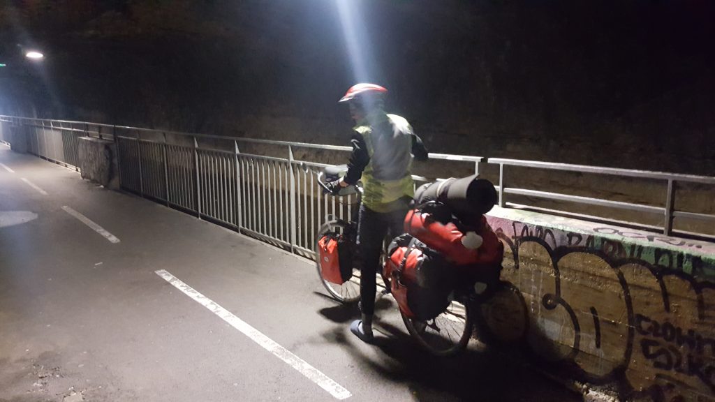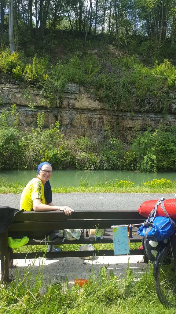 Da wir gestern beide ( ja ich auch) so platt waren sollte es heute nur 35km von Baume Les Dames nach Besançon gehen. Nach dem wir spät starteten standen wir schon nach 25km als sich Autostrasse und Radweg kreuzten vor einem fetten Imbiss. Food and Music. Burger Pommes Bier 7.50. Hatte etwas Kommunikationsprobleme und es wurde das 10€ Modell. Shit happens. Boah waren wir gemästet. Aber irgendwas war in den Teilen. Besançon haben wir unterquert und sind einfach weitergefahren und gefahren und gefahren. 63km. Wir stehen wunderbar am Doubs und die Sonne beschien uns bis eben. Traumhaft. Die hälfte der Burger noch verspeist und die zwei Reststeaks von Gestern. Jaaa, wir leiden an Heißhunger. Wir haben heute die 250km übersprungen und damit, viel mir heute so ein, die 10% der Strecke geschafft.